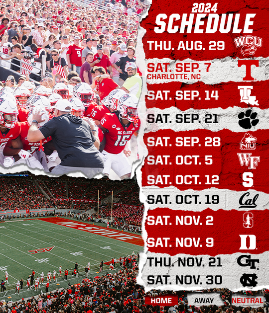 Nc State University Football Schedule 2024 – NC State Non-Conference Schedule: Can NC State be good enough to win a game over Tennessee in Charlotte? Western Carolina is the tune-up, and Louisiana Tech and Northern Illinois will be decent . On Thursday, the American Athletic Conference released the 2024 schedule for all 14 teams, which now includes Army. For a second consecutive season, the USF .